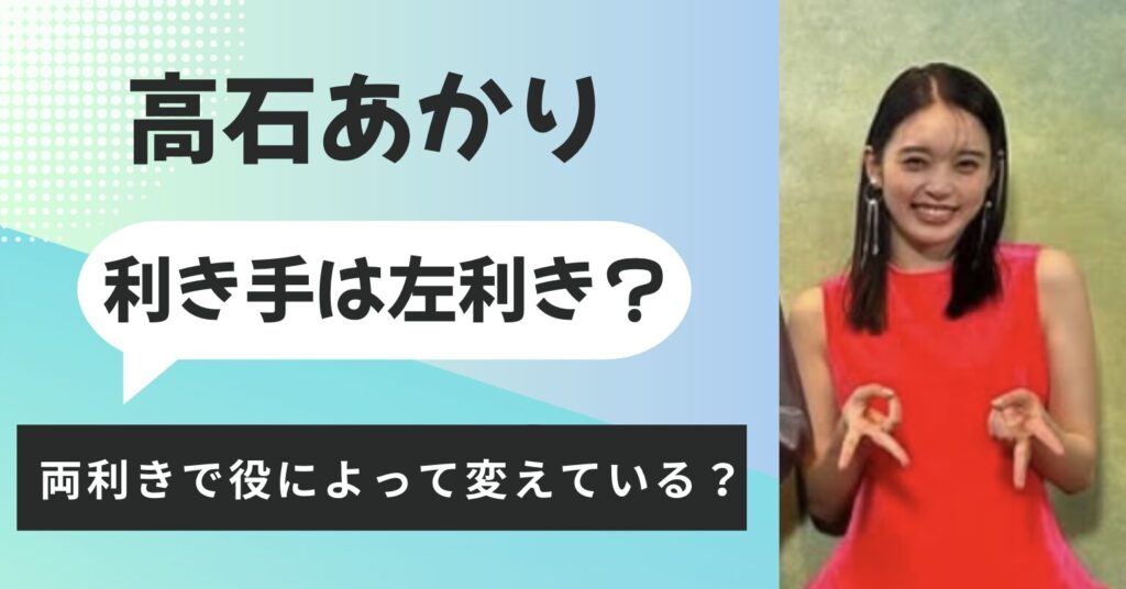 朝ドラ女優として注目が集まる高石あかりさん。 ドラマや映画で食事シーンなどでは、彼女の利き手について注目されるようで、ネット上では様々な憶測が飛び交っています。 そこで、今回は高石さんの利き手がどちらなのかということを、徹底的に調査してい... 俳優【画像】高石あかりは可愛くない?目や顔が怖いと言われる3つの理由