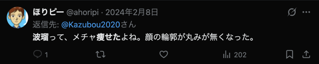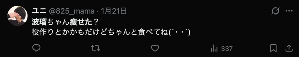 しかし、SNSでは波瑠さんが痩せたという声が多く上がっています。