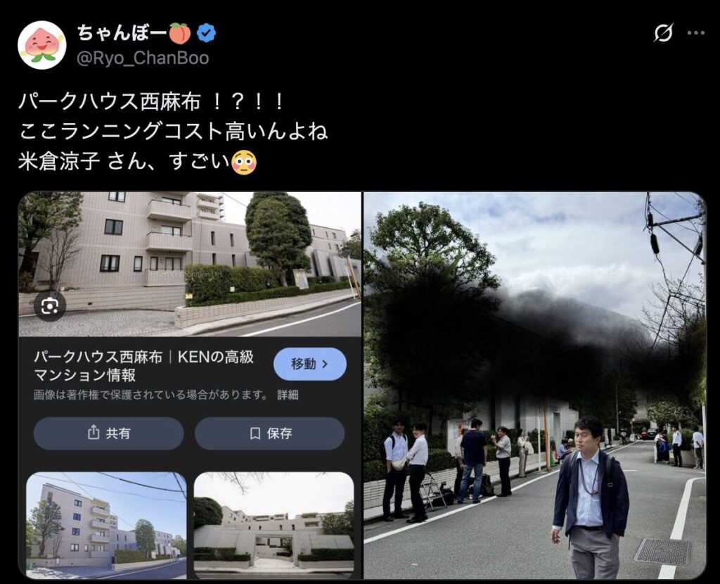 この騒動は瞬く間に広がり、この画像をきっかけに西麻布の高級マンション「パークハウス西麻布」だという説が浮上。